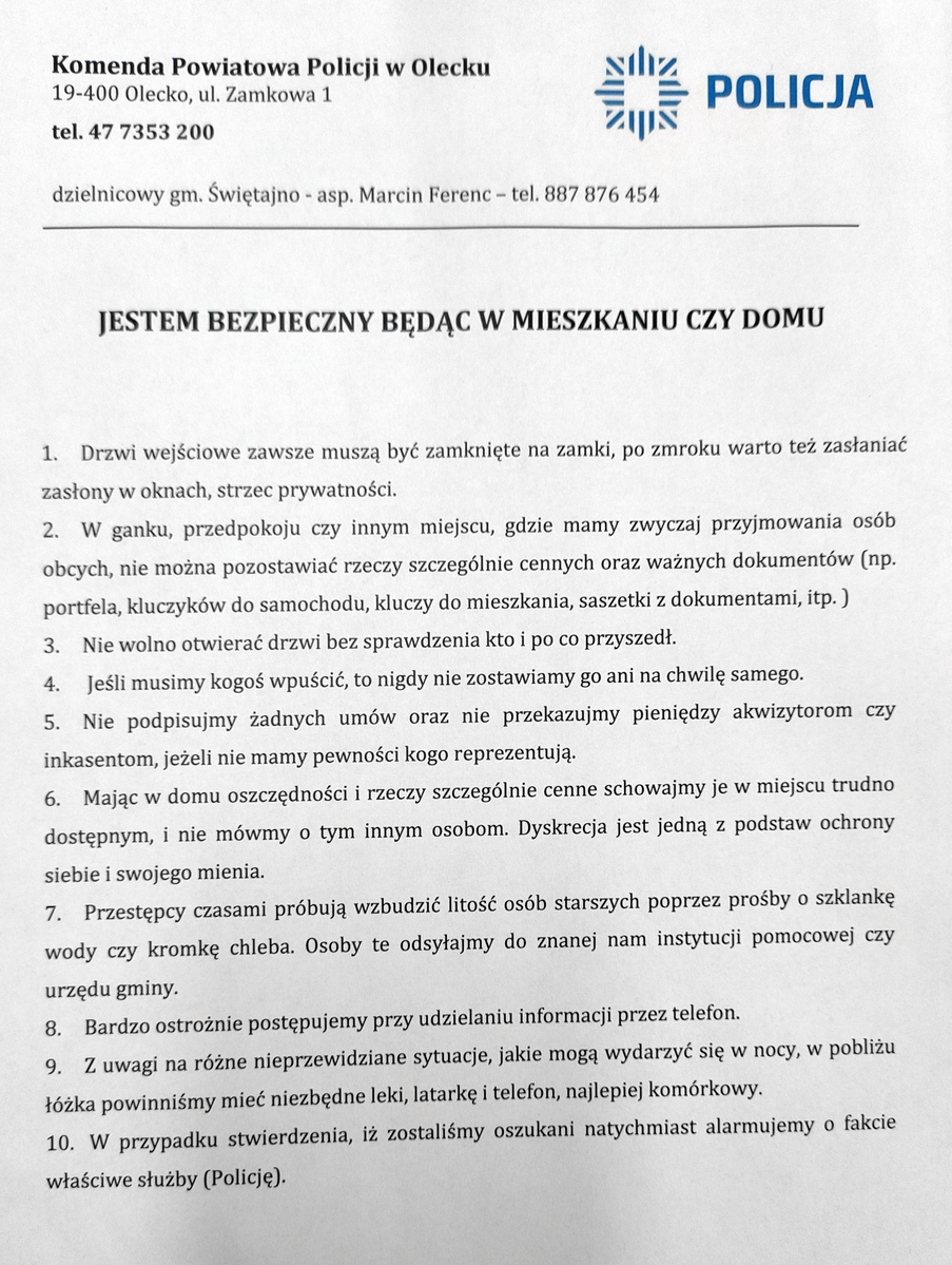 O granicy zaufania do drugiego człowieka i metodach działania oszustów rozmawiali oleccy policjanci w Klubie Seniora w miejscowości Świętajno. Przestępcy podszywając się pod członków rodziny, policjantów, przedstawicieli instytucji wyłudzając ogromne kwoty od osób starszych.