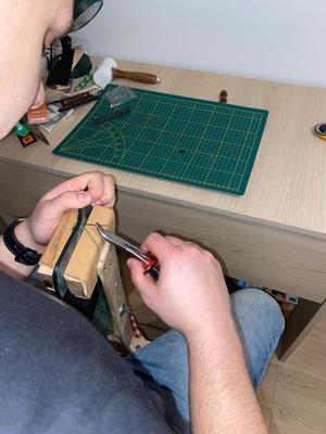 Praca z wyrobem skórzanym wymaga precyzji, cierpliwości, wewnętrznego spokoju i opanowania. To cechy, które kaletnictwo łączą również z innym zajęciem, czyli służbą policjanta. Wie o tym doskonale jeden z policjantów Komendy Powiatowej Policji w Olecku st. sierż. Dawid Jackiewicz. Funkcjonariusz ma 25 lat, a od 5 służy w Policji w ogniwie patrolowo – interwencyjnym oleckiej komendy. Swoje cechy osobowe wykorzystuję w służbie, ale także przy swoim hobby, któremu poświęca czas wolny – czyli kaletnictwie. Jak sam mówi, pozwala mu to na „odreagowanie stresu związanego z codzienną służbą, która bywa trudna i wymagająca”.