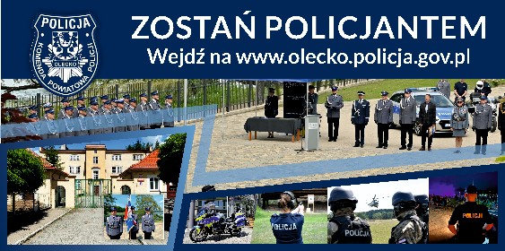 Zawód policjanta to wyzwanie, a jednocześnie marzenie wielu młodych ludzi. Z pewnością to ciekawa praca, dająca dużo satysfakcji, ale także bardzo wymagająca i odpowiedzialna służba. Funkcjonariusze z Olecka promują zawód policjanta, organizując spotkania oraz dni kandydata. Jedną z takich promocji jest nowy baner zachęcający do wstąpienia w szeregi oleckiej policji. Plakat widnieje na tablicy przy Urzędzie Miasta w Olecku oraz zawisł przed budynkiem oleckiej komendy.