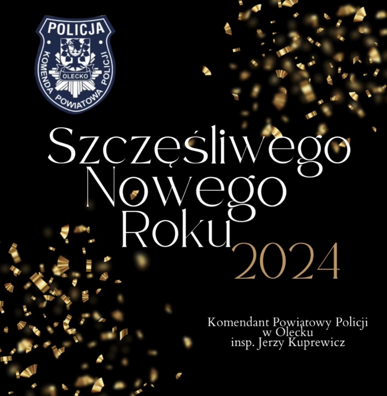 Niech Nowy Rok 2024 będzie dla Was pełen ciepła, radości i przyjaciół, a w Waszym domu nigdy nie zabraknie miłości i zrozumienia. Wszelkiej pomyślności, spełnienia marzeń i zdrowia życzy Komendant Powiatowy Policji w Olecku insp. Jerzy Kuprewicz wraz z wszystkimi policjantami i pracownikami oleckiej jednostki.