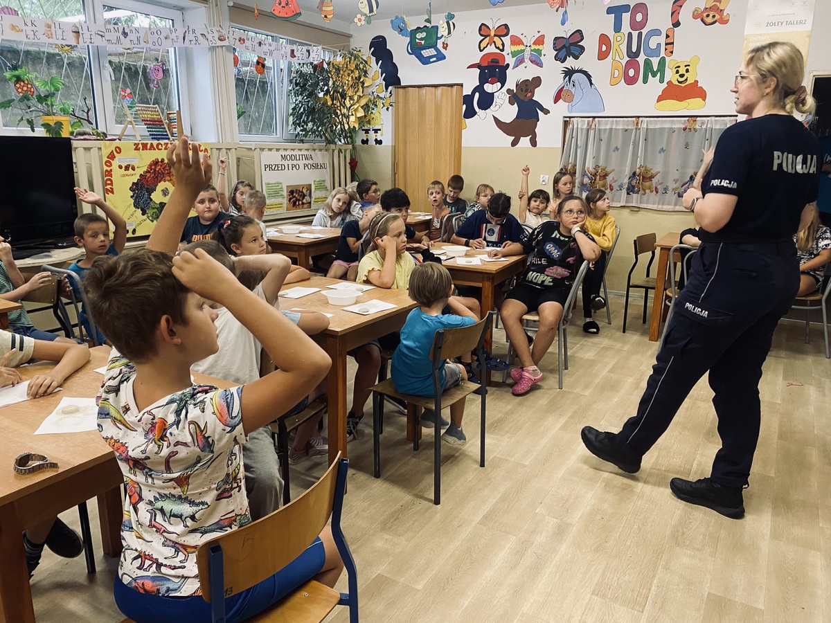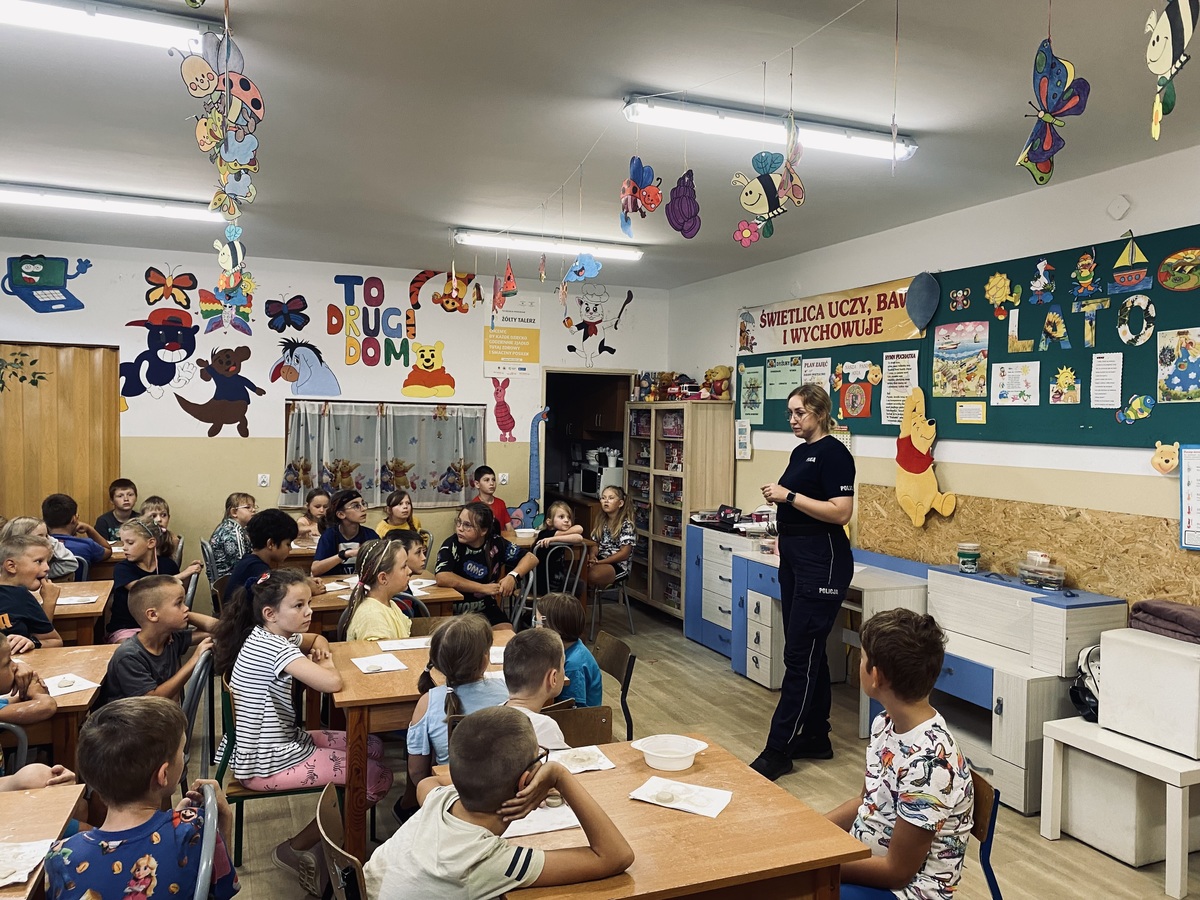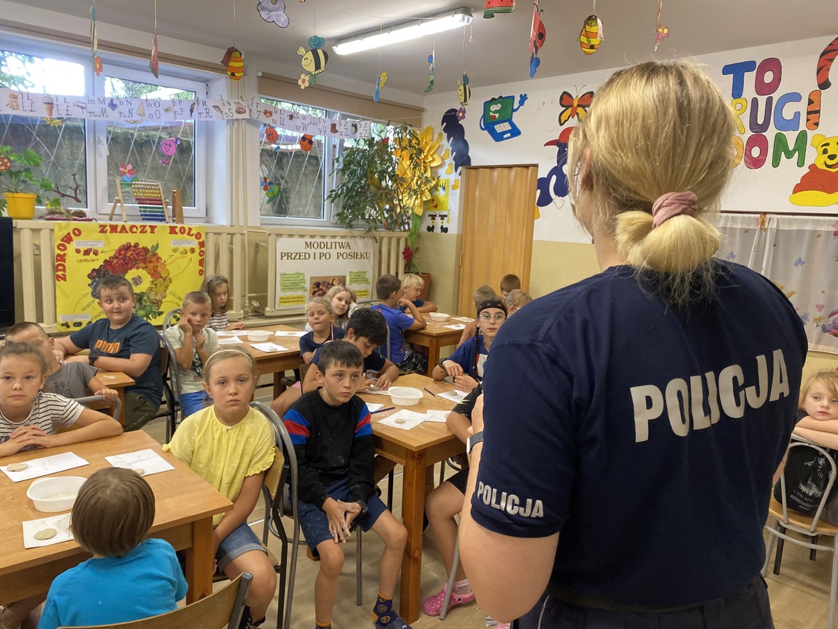Bezpieczeństwo to priorytet dla oleckich policjantów. Tym samym funkcjonariusze z Komendy Powiatowej Policji w Olecku prowadzą działania profilaktyczne Mimo, że półmetek wakacji już za nami, policjanci nie poprzestają w organizacji spotkań z dziećmi i młodzieżą, aby jak najczęściej rozmawiać o bezpieczeństwie podczas letniego wypoczynku. Bezpieczeństwo dzieci to priotytetowe zadanie Policji, dlatego w ramach działań "Bezpieczne wakacje 2024" oraz " Kręci mnie bezpieczeństwo nad wodą", funkcjonariusze przypominają uczestnikom spotkań podstawowe zasady bezpieczeństwa podczsa wypoczynku nad wodą, w podróży, czy w miejscu zamieszkania.