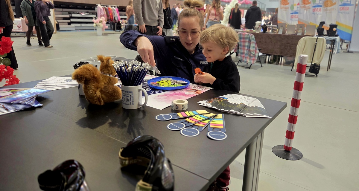 W niedzielę ( 15.03.2026) policjanci wzięli udział w wydarzeniu pn. Obłędny Dzień Kobiet, które odbyło się na Hali Lega w Olecku. Oleccy funkcjonariusze przygotowali stoisko profilaktyczne. Najmłodsi mogli sprawdzić swoją wiedzę i umiejętności w miasteczku ruchu drogowego, gdzie w praktyczny sposób poznawali zasady bezpiecznego poruszania się po drodze. Starszych uczestników wydarzenia zainteresowały natomiast specjalne alko- i narko- gogle, które pozwalały przekonać się jak alkohol i środki odurzające wpływają na percepcję, koordynacje ruchową oraz ocenę sytuacji na drodze. Takie doświadczenie pokazuje, jak bardzo używki mogą zaburzyć zdolność bezpiecznego funkcjonowania w codziennych sytuacjach.