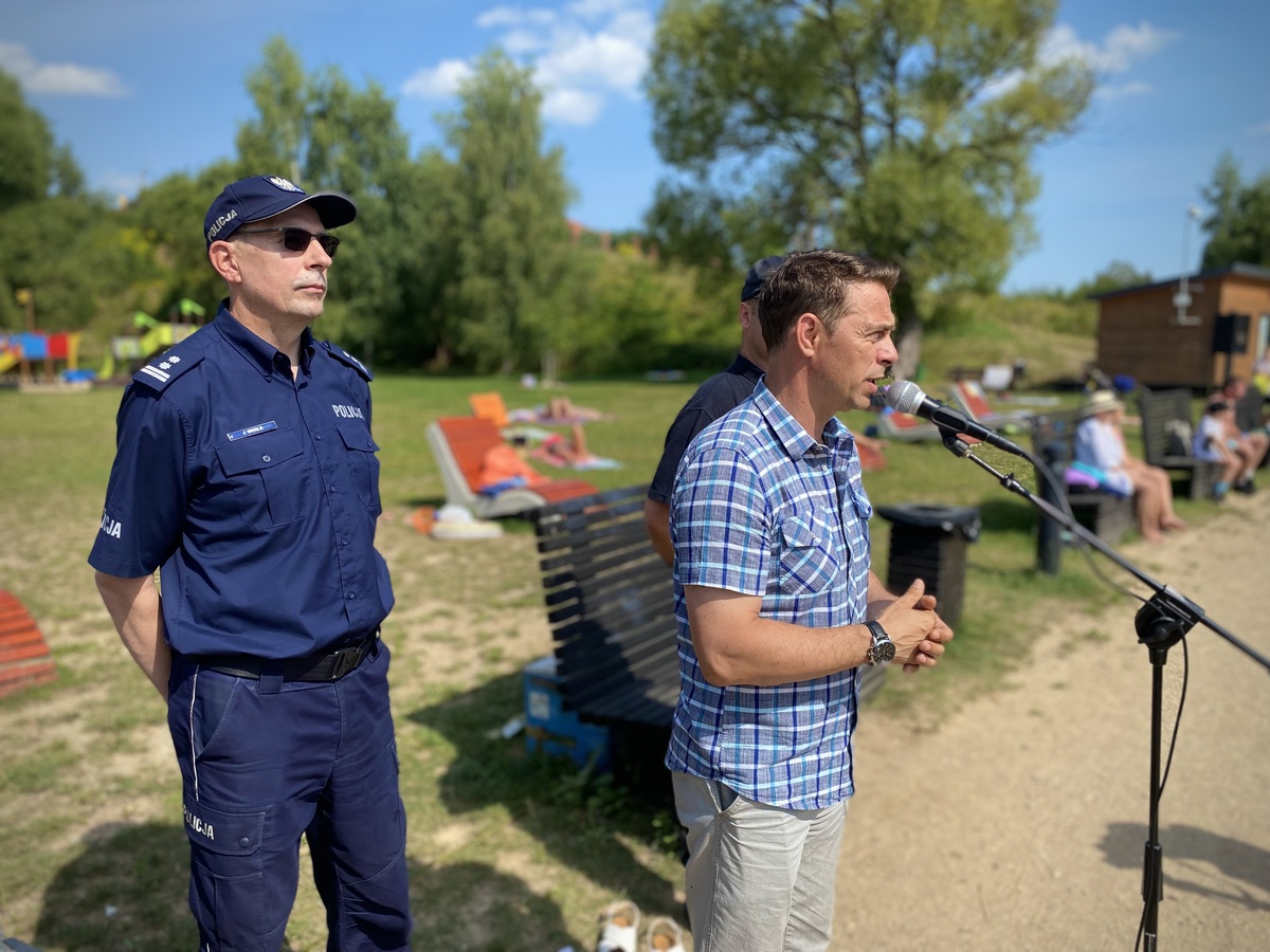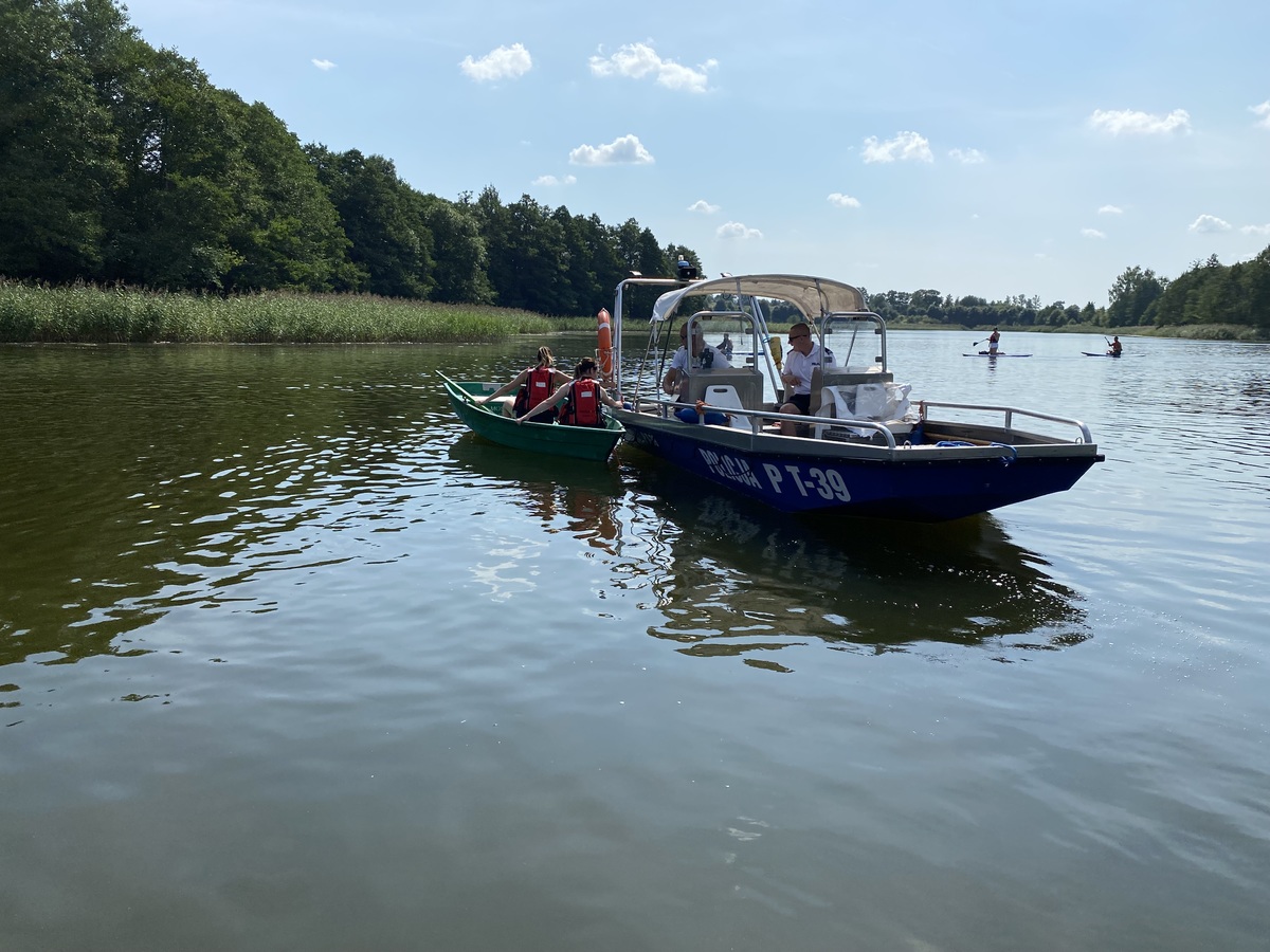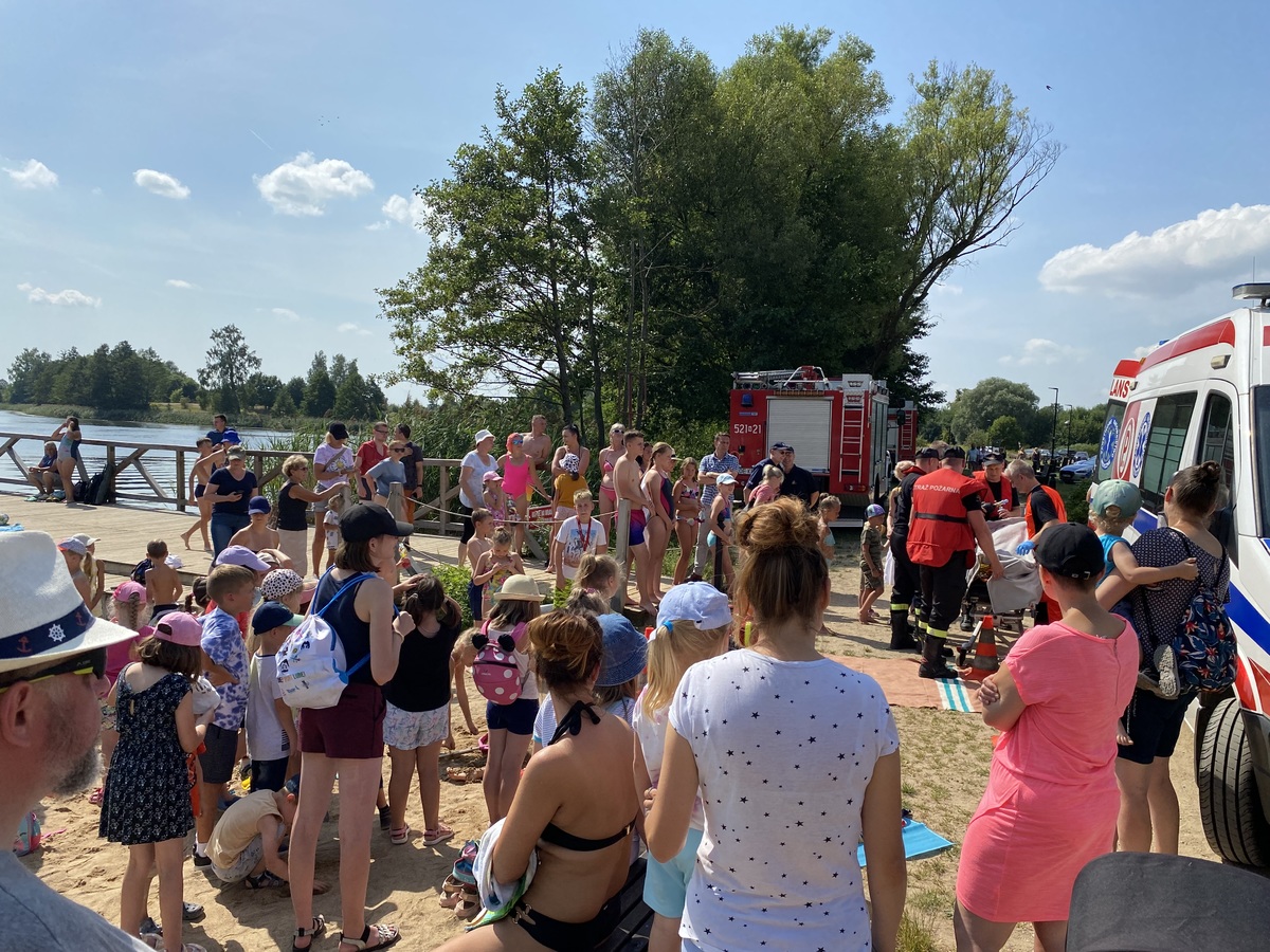 W czwartek (18.08.2022r.) na plaży miejskiej „Szyjka” odbyło się niecodzienne widowisko. W ramach promocji „Bezpiecznych Wakacji”, mieszkańcy powiatu oleckiego mieli okazję obejrzeć na żywo jak pracują służby, które na co dzień dbają o bezpieczeństwo nas wszystkich. Chwilę przed rozpoczęciem ćwiczeń z plażowiczami przywitał się obecny na miejscu burmistrz Olecka Karol Sobczak, który życzył wszystkim bezpiecznego wypoczynku. W ramach pokazu grupa osób wypłynęła na środek jeziora łódką, która po chwili stanęła w płomieniach, a poszkodowani znaleźli się w wodzie. Natychmiast na pomoc ruszyły łodzie Policji oraz Straży Pożarnej. Wszystkie osoby zostały uratowane, a łódź ugaszona i ściągnięta na brzeg, gdzie do działań włączyli się ratownicy medyczni którzy również zademonstrowali swoje umiejętności.